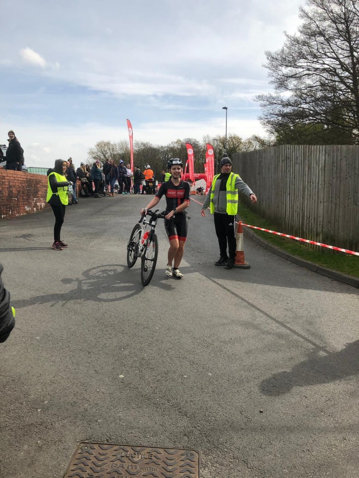 Unsurprisingly I really enjoyed the second half of the bike course with the tailwind and downhill sections. Got the speed up to 18.5mph average at its most and I think 18.2mph by the time I had made it back to the mount line through the residential section. Happy with that. Saw David and Roger towards the end of the bike and Roger called over that I was “on target”. With the staggered race start you cannot race against other athletes per se, but I did have target times for every discipline that I had discussed with them both in the car on the way up.