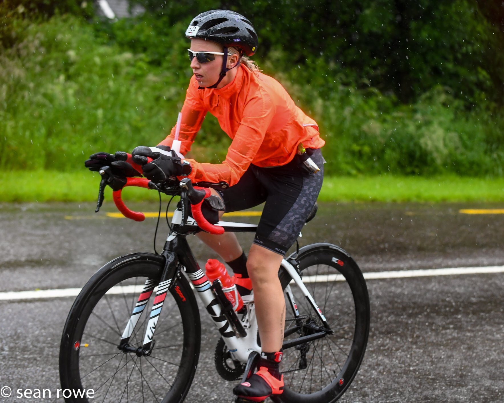 When I arrived in the tent I helped the girl next to me remove her helmet before she did mine, our fingers not really working properly. I didn’t change my clothing, I took my cycling shorts and jersey off leaving my trisuit and arm warmers on. I did change my socks and it was nice to have dry feet.. for a minute! I don’t know if I should have put more layers on in hindsight. Maybe a dry running coat. Although it wouldn’t have been dry for long.