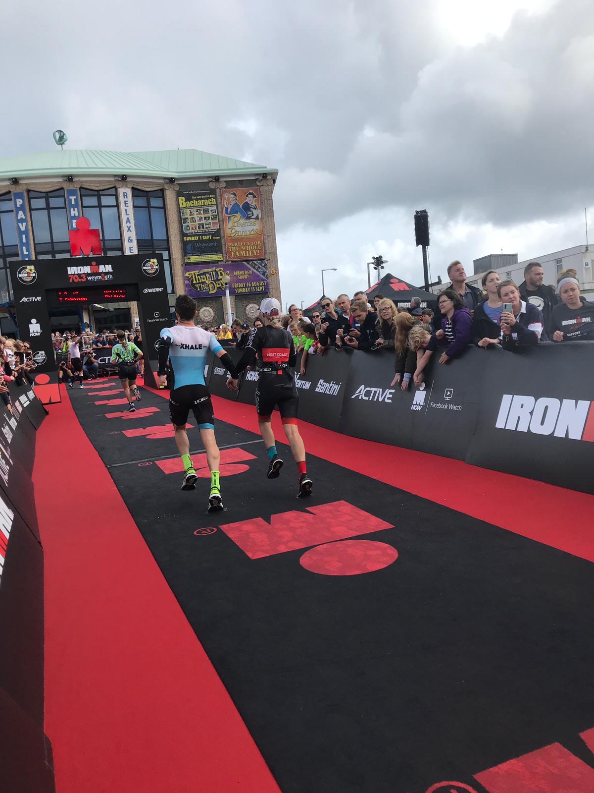 Back to T2 and onto the run. I see Scott running closely followed by David! “I’m doing a Skipper!” he yelled. The week before we had spectated Ironman Wales and Joe Skipper had run the marathon despite being DQ’d on the bike. David was doing the same, although he hadn’t been DQ’d, he was out of the race as he hadn’t completed the bike.